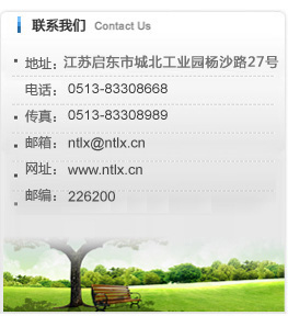 電話:0513-83209668 傳真:0513-83308989 網址:www_ntlx_cn.moooz.cn E-mail:ntlx@ntlx.cn